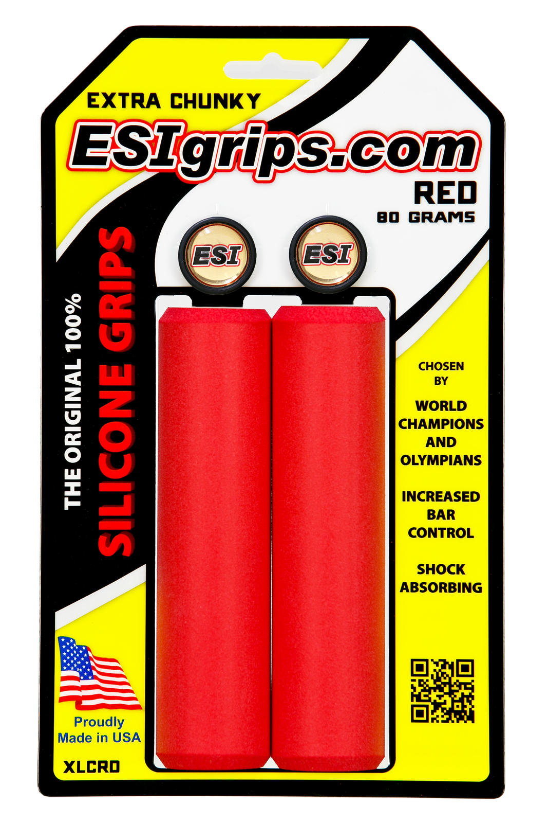 Pic for illustrative purpose - item is EXTRA Chunky ESI Grip MTB EXTRA Chunky RED 80gm (XLCRD) EXTRA Chunky MTB grips are recommended for Grip Shift and riders looking for the best shock absorbing grip in the industry! EXTRA Chunky grips weigh 80 grams plus or minus 5%. Benefits of Silicone *Grip- Wet or dry, your hands stay put! - Slip-proof, yet not sticky! *Comfort- Reduces Hand numbness - Fatigue - Arm pump *Wear- UV resistant - Non-Pores - Will not harden or fade *Bar Adhesion- No glue, hairspray, or lock-ons required! These grips will not throttle! *Elements- Withstands severe Temperatures - Climates - any condition you can throw at it! *Maintenance- Washable - Install/Remove with - Rubbing Alcohol - Window cleaner - Compressed Air