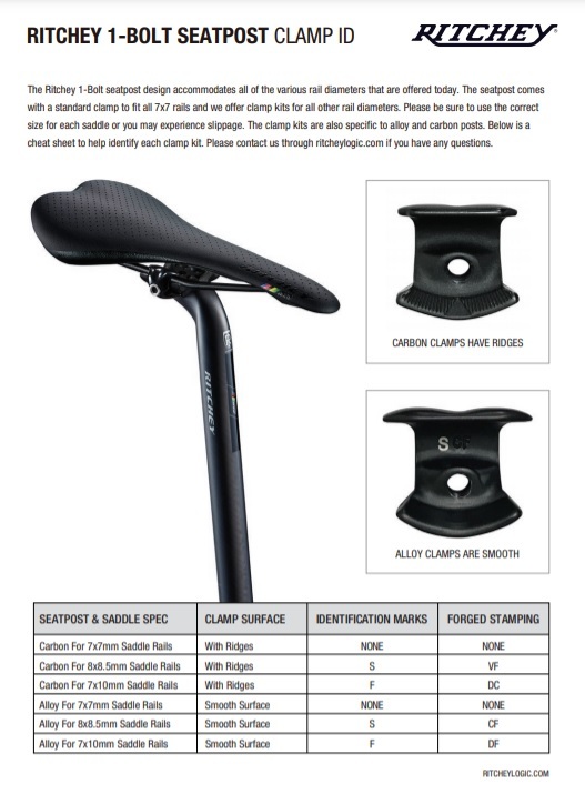 Accessory clamps to suit Ritchey Single Bolt ALLOY Seatpost.