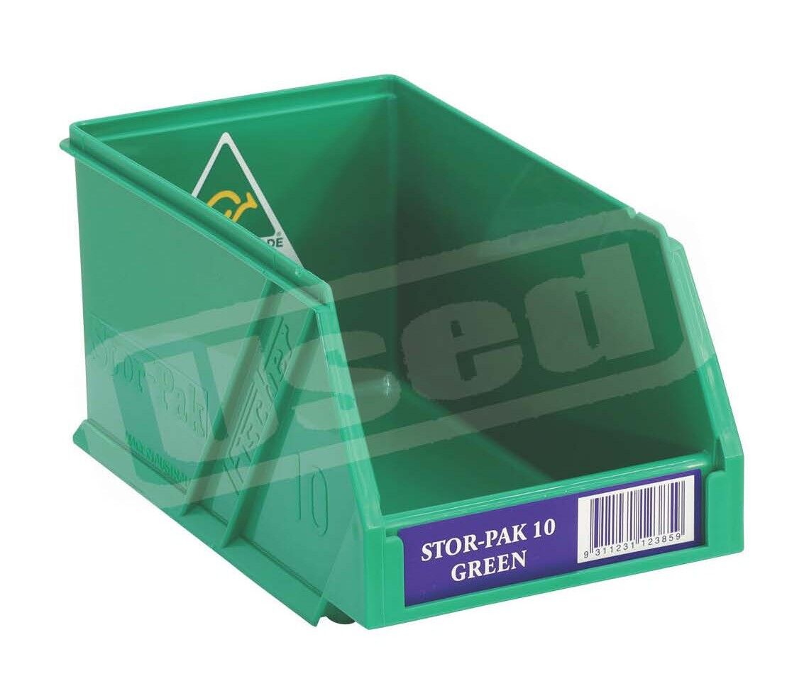 USED Stor-Pak No. #10 (100x170x85mm) WxDxH 1.0L capacity -GREEN (6 per carton)